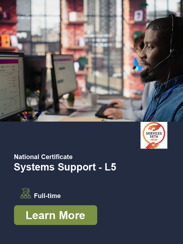 This faculty equips learners with the advanced digital skills and technical expertise required to thrive in today’s rapidly evolving technological landscape. As industries embrace automation, artificial intelligence, data analytics and next-generation communication systems, our programmes ensure students develop the practical abilities and professional competencies needed to meet these demands with confidence. By combining strong theoretical foundations with real-world application, this faculty empowers learners to innovate, solve complex problems and play an active role in driving digital progress within their organisations and communities. All qualifications are fully accredited by the QCTO and Services SETA, ensuring nationally recognised, high-quality programmes that support meaningful career development and long-term employability.